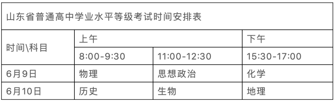 普通高中学业水平等级考试由我省自主命题,考生从思想政治、历史、地理、物理、化学、生物等6个科目中选报3科参加考试。考试时间安排在6月9日—10日,每科考试时间为90分钟。