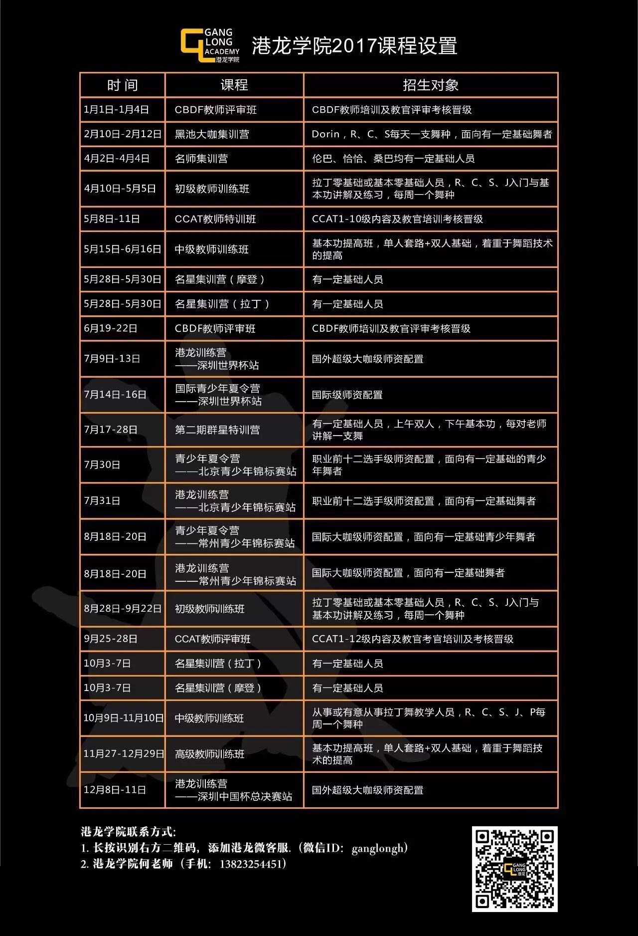 为促进中外国标舞技术交流,港龙每年借国际赛事举办的契机,邀请在国内外收到广泛欢迎的评审及现役选手担任教官,开设训练营。